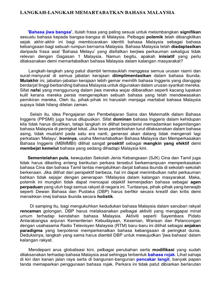 Karangan Bm Spm Langkah Langkah Memartabatkan Bahasa Melayu Pdf